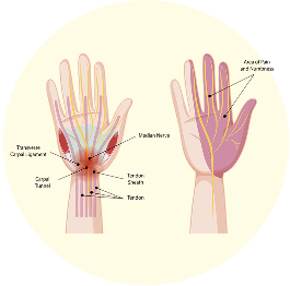 This condition arises from the compression of the median nerve in the wrist's carpal tunnel. It causes numbness, tingling, and pain in the hand and fingers, especially the thumb, index, and middle fingers. Repetitive activities or conditions like arthritis can contribute to its development.