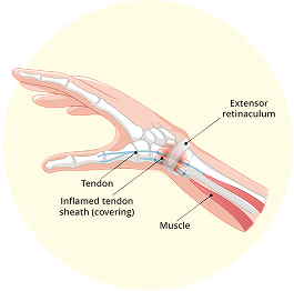 This condition affects the tendons on the thumb side of the wrist, causing pain, swelling, and difficulty moving the thumb and wrist. It often occurs due to repetitive gripping, pinching, or twisting motions, leading to irritation and thickening of the tendon sheath.